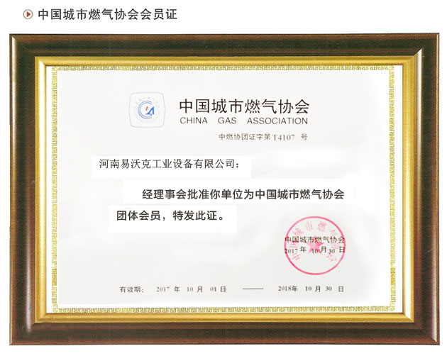 熱烈慶祝河南易沃克成為中國城市燃氣協(xié)會會員